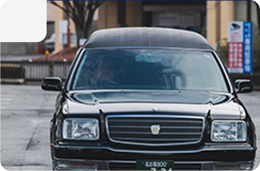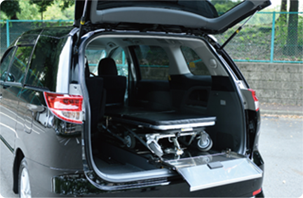 ご遺体の搬送には、必要な設備を搭載したご遺体専用車両を使用いたします。車両には、ご親族2名様の付き添い乗車が可能です。